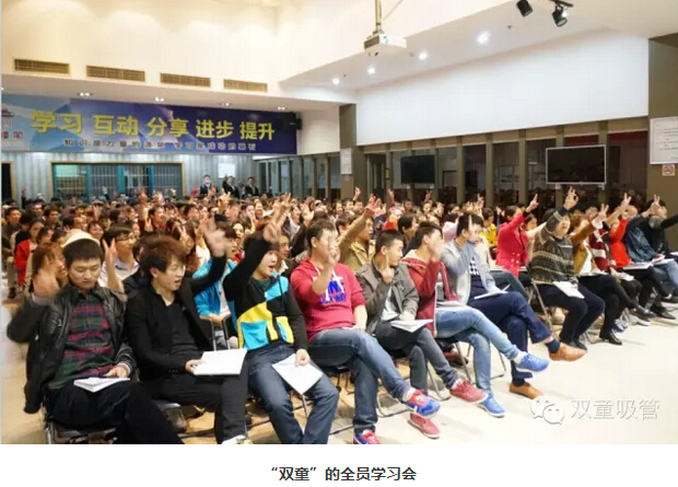 “雙童”一直倡導建設學習型企業(yè),營造學習氛圍,每周召開2次全體員工的學習會,分批次分部門開展班組部門學習會,通過企業(yè)文化書籍、意識形態(tài)、制度培訓、技能培訓等各個方面,對員工開展學習培訓。無論是掃地阿姨還是看門叔叔,都必須參加全員學習會,感受學習氛圍!