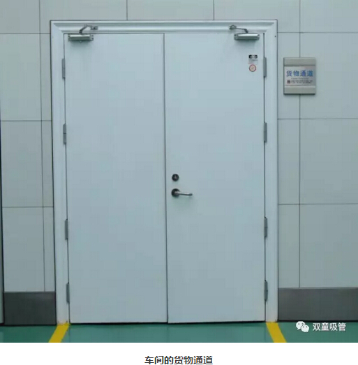 在車間大門前,人貨入口處分離通道有嚴格的區(qū)域劃分。
