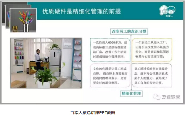 優(yōu)質硬件是精細化管理的前提,更是提升產(chǎn)品品質的前提,它不僅能潛移默化地影響員工的素養(yǎng),更能提高員工的質量意識!所以好的環(huán)境決定了員工會做出怎樣的產(chǎn)品!唯有一流的硬件環(huán)境,才能生產(chǎn)出世界一流的完美產(chǎn)品!看到這里,大家應該明白“雙童”為何能做好一根小吸管了吧!