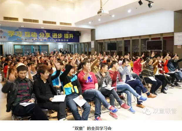 “雙童”一直倡導(dǎo)建設(shè)學(xué)習(xí)型企業(yè),營造學(xué)習(xí)氛圍,每周召開兩次全體員工的學(xué)習(xí)會,分批次分部門開展班組部門學(xué)習(xí)會,通過企業(yè)文化書籍、意識形態(tài)、制度培訓(xùn)、技能培訓(xùn)等各個方面,對員工開展學(xué)習(xí)培訓(xùn)。無論是掃地阿姨還是看門叔叔,都必須參加全員學(xué)習(xí)會,感受學(xué)習(xí)氛圍!