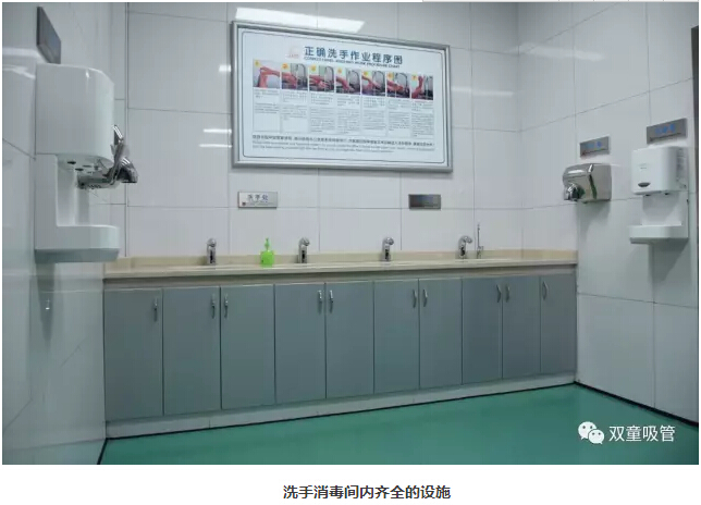 4、整理完衣物后,來到洗手消毒間,進(jìn)行洗手、烘干、消毒。