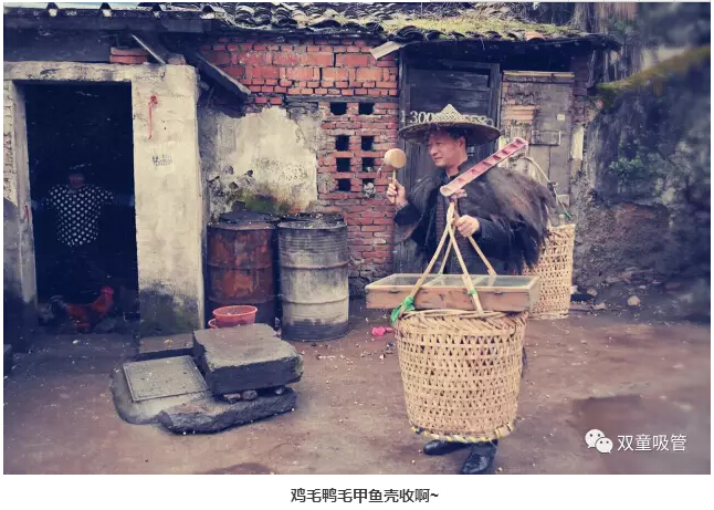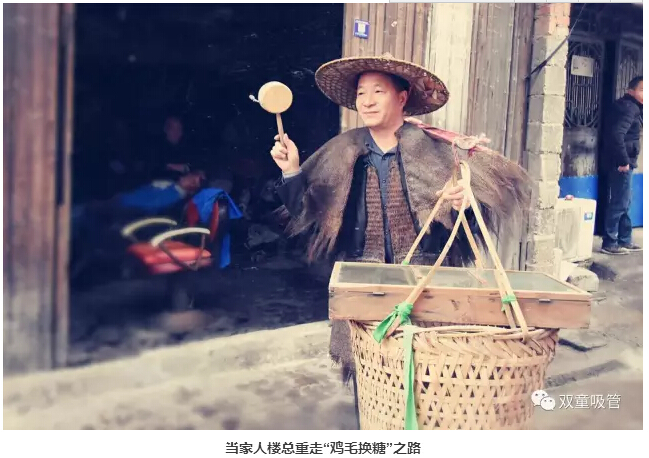 挑“貨郎擔”用的扁擔和一般的扁擔是不一樣的,杉木扁擔很軟,挑的過程當中會很有節(jié)奏的搖起來。這樣一來,在挑的時候人的腳步會跟著走,所以挑著雞毛走路會特別快,小孩子不跑快點都追不上我?,F在我走路很快,和老婆出門時不時的就把我老婆扔在了后面,同事和我出差時一轉眼就跟丟了,這都是因為那時“雞毛換糖”練出來的腳力。