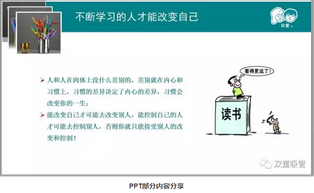 最后,妞也分享道:“無論你在哪里,都不要放棄今天的學(xué)習(xí),學(xué)到的一定是自己的,也會讓你終身受用,只有不斷地學(xué)習(xí)才能改變自己!” 有的人會說,學(xué)習(xí)是很枯燥的。但是吸管妞覺得,通過不斷地探索改革,“雙童”的學(xué)習(xí)會,卻越來越熱鬧,越來越快樂……