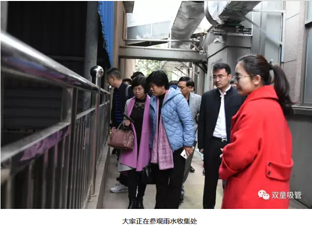 參觀的第一站,是我們的節(jié)能降耗系統(tǒng)。大家一起參觀了雨水收集處、垃圾分類站等地。參觀到我們的中水回用池過濾系統(tǒng)時(shí),在看到地面上的一塊塊“玻璃”后,大家都十分好奇。吸管妞介紹道:“其實(shí),這下面埋著的是過濾芯,用來過濾廢水,是廢水循環(huán)過程中的一個(gè)步驟。” 大家聽后,對(duì)“雙童”這種生態(tài)循環(huán)的做法都十分認(rèn)可!