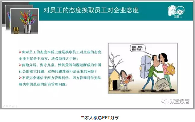 一開場(chǎng),大家對(duì)“雙童”的“家文化”很感興趣!當(dāng)家人樓總首先和大家介紹了“家文化”在“雙童”的應(yīng)用及實(shí)踐效益。“家”是員工最大的牽掛,解決了員工的問題,他們才能全身心投入到工作當(dāng)中,人心管理就是企業(yè)生態(tài)系統(tǒng)的改善?!半p童”明確把“家文化”作為員工管理的著力點(diǎn),以“小家”形成“大家”,凝聚團(tuán)隊(duì)“人心”!