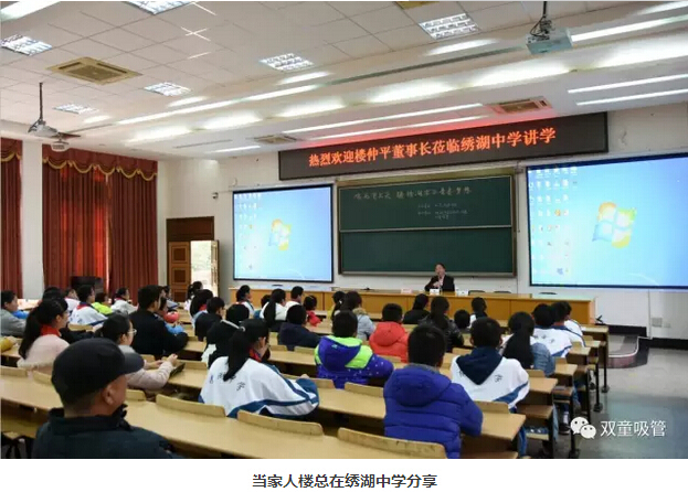 早在三月份,當家人樓總就受邀前往義烏市繡湖中學(xué)參加了“雞毛飛上天,鑄繡湖學(xué)子青春夢想”活動,和50多位繡湖學(xué)子分享“雞毛換糖”的親身經(jīng)歷!
