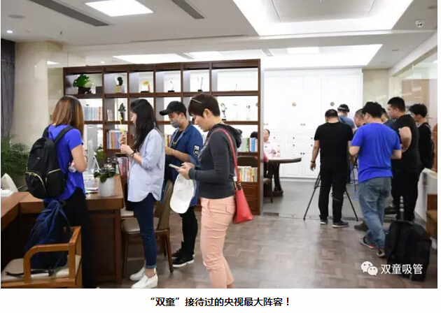 看看現(xiàn)場拍攝照片,二十多名拍攝記者、五臺攝像機分兩路行動,一路在辦公室做采訪對話,一路徑直前往車間拍攝生產(chǎn)畫面。連當(dāng)家人樓總都不禁感嘆:這可真是“雙童”接待過的央視最大陣容!