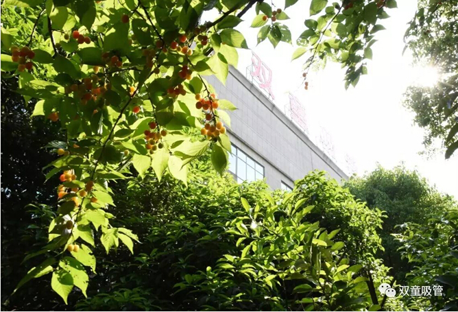 在這一片生機勃勃的景色下,“雙童”廠區(qū)內(nèi)的誘人的果實也格外醒目!在“雙童”,果樹可是隨處可見,柚子樹、柿子樹、枇杷樹、桃樹、葡萄樹……這么多的果樹,保證了我們一年四季都有水果豐收!而現(xiàn)在,正是“雙童”櫻桃的成熟季!