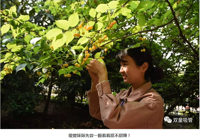 如此誘人的櫻桃,吃貨們當然待不住啦!吸管妞和吸管妹妹們作為“雙童”專業(yè)吃貨當然要先去幫大家嘗嘗味道啦!從樹上摘下櫻桃,直接丟進嘴里,真是甜到了心坎里,忍不住吃了一顆又一顆,還有哪種新鮮比得上這樣現(xiàn)采品嘗呢!