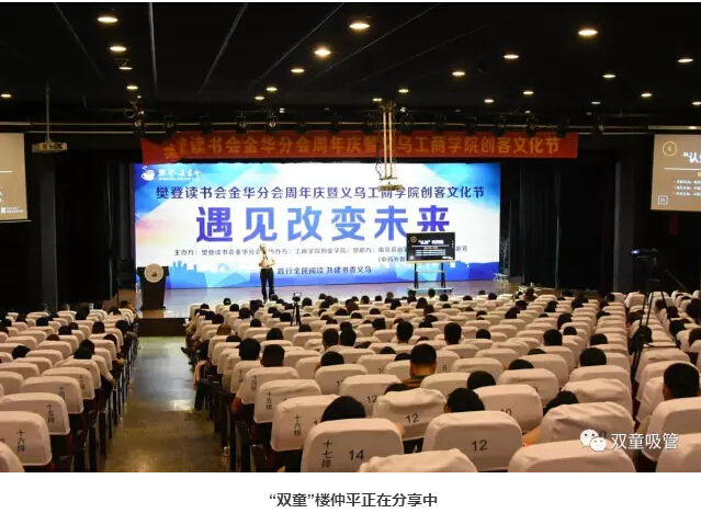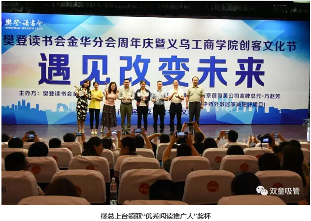慶典上,樊登讀書會金華分會會長王旭飛進(jìn)行了致辭,義烏工商學(xué)院賈少華院長也作了“不讀書無成長”的主題分享,指導(dǎo)大家如何培養(yǎng)有學(xué)習(xí)力的孩子。同時,在頒獎環(huán)節(jié)中,“雙童”樓仲平和“雙童吸管”也分別獲得了“優(yōu)秀閱讀推廣人”和“優(yōu)秀企業(yè)讀書會”的榮譽稱號!