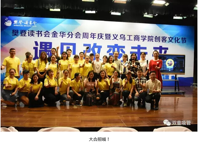 此次“樊登讀書會周年慶暨創(chuàng)業(yè)學(xué)院創(chuàng)客文化節(jié)”終于圓滿落幕,吸管妞也為樊登讀書會不斷的成長和壯大感到高興,相信“雙童”參加樊登讀書會企業(yè)版后,可以和讀書會共成長!吸管妞在此也預(yù)祝樊登讀書會金華分會越來越好,希望更多的人加入這個大家庭,共同學(xué)習(xí),共同進(jìn)步!