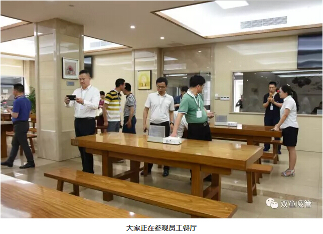 參觀的第一站是我們的五星級(jí)員工餐廳,餐桌上的用餐提示語、墻上的相框、餐桌上的編號(hào)銅牌……隨處可見的優(yōu)質(zhì)細(xì)節(jié)都讓企業(yè)主們稱贊不已!除此之外,員工的餐飲都是三菜一湯的標(biāo)配,員工們使用后的所有碗筷都由食堂阿姨進(jìn)行清洗和消毒。大家在看到如此精細(xì)的就餐環(huán)境和硬件后都十分欣慰,紛紛贊嘆:“員工們能在這么好的環(huán)境里就餐真幸福!”