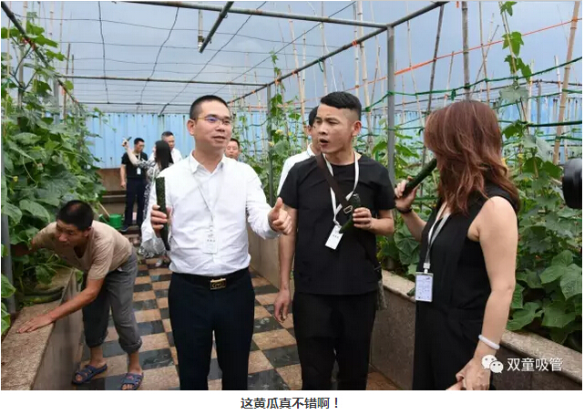 移步屋頂菜園,在看到各類新鮮的瓜果蔬菜后,企業(yè)主們都感嘆在工廠里竟有這樣一片田園風(fēng)光之地。適逢菜園里的黃瓜熟了,大家也體檢了一把采摘的樂趣,我們的黃瓜可是純天然的哦!