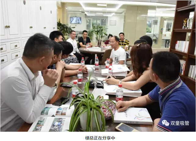 參觀結(jié)束后,大家回到了行政中心,與“雙童”樓仲平進(jìn)行深入交流。首先,“雙童”樓仲平也結(jié)合自身經(jīng)歷和大家分享:“永遠(yuǎn)把自己定位在25歲,不斷學(xué)習(xí)去認(rèn)知新的世界,去擁抱這個(gè)高速變化的世界,從而影響團(tuán)隊(duì)并保持“雙童”不被淘汰。” 所以,樓總每天都利用碎片化時(shí)間進(jìn)行學(xué)習(xí)閱讀,并影響團(tuán)隊(duì)不斷進(jìn)行學(xué)習(xí),提升自己的認(rèn)知!