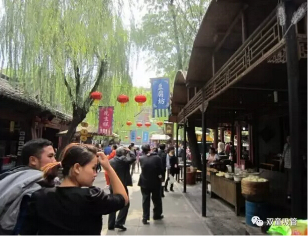走進(jìn)景區(qū)內(nèi),一派市井熱鬧的景象!街衢縱橫,茶樓酒肆、藝場(chǎng)教坊林立,處處管弦笙歌。傳統(tǒng)賣(mài)藝耍大刀的當(dāng)街而舞、皮影戲、曲藝、 “繡球招親”、鬼屋,各類(lèi)項(xiàng)目真是應(yīng)接不暇,“雙童”人都要high翻天啦!