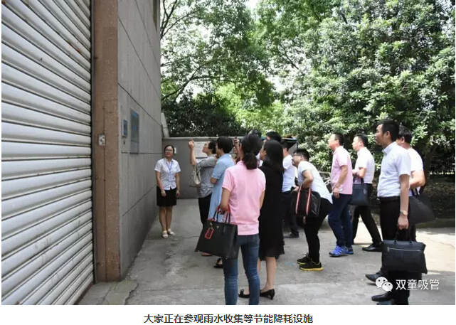 首先,吸管妞帶大家參觀起了“雙童”的節(jié)能降耗措施,參觀了雨水收集處、垃圾分類(lèi)站等地,和大家講解了“雙童”的廢水循環(huán)利用以及雨水收集系統(tǒng)和原理。老師和同學(xué)們對(duì)“雙童”這種生態(tài)循環(huán)、節(jié)約資源的做法十分認(rèn)可,更對(duì)樓總多年前能有這樣的環(huán)保理念十分敬佩!