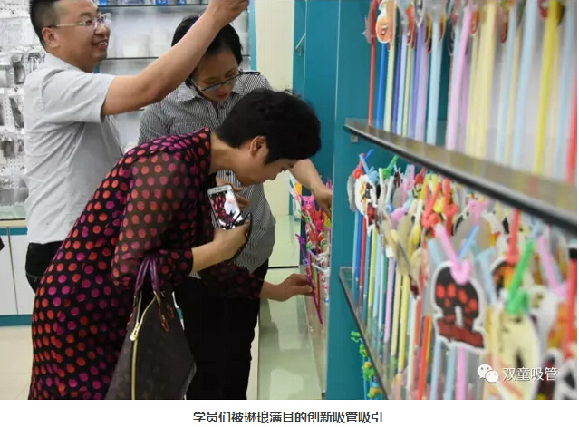 移步樣品房,大家都被琳瑯滿(mǎn)目的各類(lèi)吸管所吸引,尤其是各類(lèi)功能情趣的創(chuàng)新吸管,它顛覆了大家腦海里幾分幾厘的普通吸管,而是轉(zhuǎn)變?yōu)閹讐K錢(qián)一支的高端產(chǎn)品,更是讓每個(gè)人都嘖嘖稱(chēng)奇,贊嘆“雙童”的創(chuàng)新力之強(qiáng)!