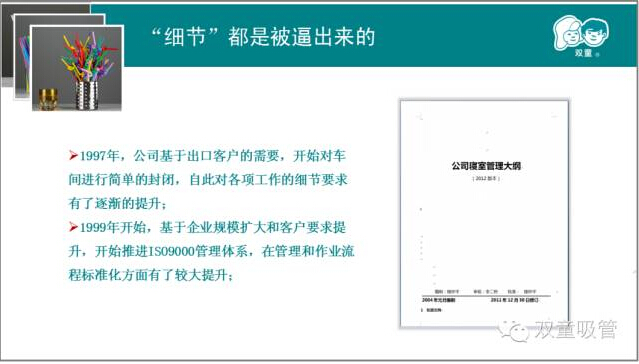 第二章,“雙童”樓仲平結(jié)合我們“雙童”自身的真實(shí)案例,來(lái)說(shuō)明實(shí)施精細(xì)化管理對(duì)產(chǎn)品質(zhì)量的重要性!通過(guò)和日本客戶的合作,我們一次次地提升,一次次地逼著自己做更高的要求和改變,以此來(lái)達(dá)到客戶的需求,更通過(guò)這些舉措,慢慢地改變我們自己的產(chǎn)品質(zhì)量和員工素質(zhì)!