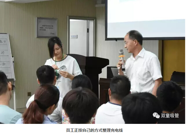 在學(xué)習(xí)會開場前,“雙童”樓仲平現(xiàn)場邀請了員工整理蘋果電腦充電線,結(jié)果員工認真的繞了好幾次也沒達標。原來,整理充電線雖然沒有什么技術(shù)含量,但單憑細節(jié)來說,我們隨手整理的往往容易散亂開來,而按照標準流程進行操作整理,關(guān)注到每一個細節(jié)時,充電線就不會散!這個小互動也引導(dǎo)員工們認知到無論做什么事情都應(yīng)該關(guān)注細節(jié),認知細節(jié)的重要性!