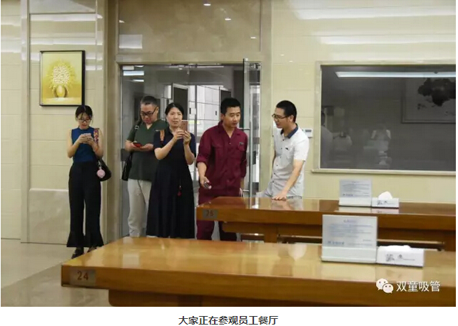 接下來,大家來到了員工餐廳,餐桌上的用餐提示語(yǔ)、墻上的相框、餐桌上的編號(hào)銅牌……隨處可見的優(yōu)質(zhì)細(xì)節(jié)都讓大家稱贊不已!除此之外,員工的餐飲都是三菜一湯的標(biāo)配,員工們使用后的所有碗筷都由食堂阿姨進(jìn)行清洗和消毒。大家在看到如此精細(xì)的就餐環(huán)境和硬件后紛紛表示很羨慕呢!