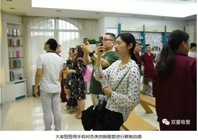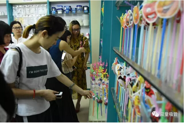 移步樣品房,看到如此新穎的吸管,大家紛紛拿著手機(jī)相機(jī)對(duì)它們進(jìn)行聚焦攝影!妞也向大家介紹了一系列創(chuàng)新吸管,讓他們驚訝的是,原來一根小小的吸管也可以有這么多的功能可以開發(fā)!