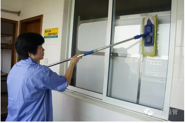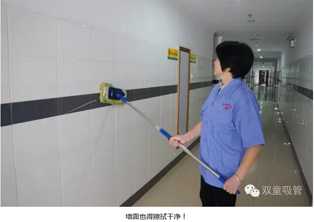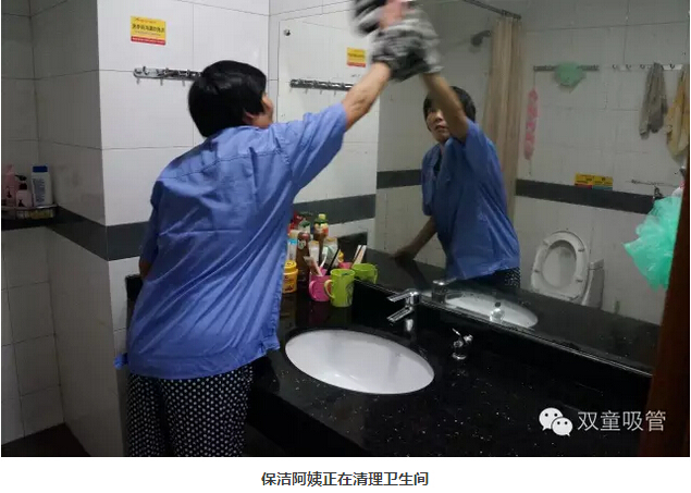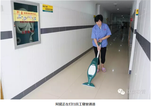 首先吸管妞就從衛(wèi)生保潔工作說起,每天清晨,保潔阿姨就已經(jīng)將員工寢室的通道打掃地干干凈凈了。墻面上的每一塊瓷磚都得用布拖把擦拭干凈,不能留下一點(diǎn)灰塵!