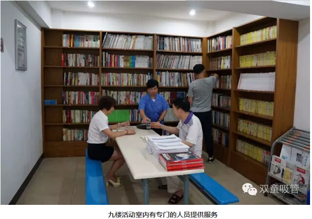 來到九樓的員工活動室,電視、電腦、乒乓球桌等設(shè)施一應(yīng)俱全。下班后,員工們可以打乒乓球,唱卡拉OK,看電影;還可以在圖書室看看書。我們還設(shè)立了服務(wù)臺,有一名服務(wù)人員為員工們進(jìn)行服務(wù)。