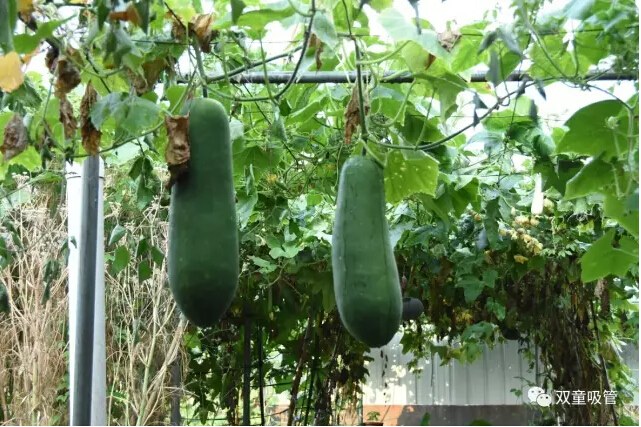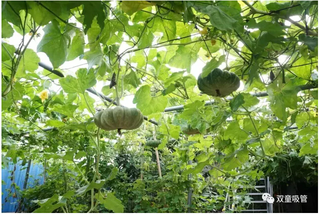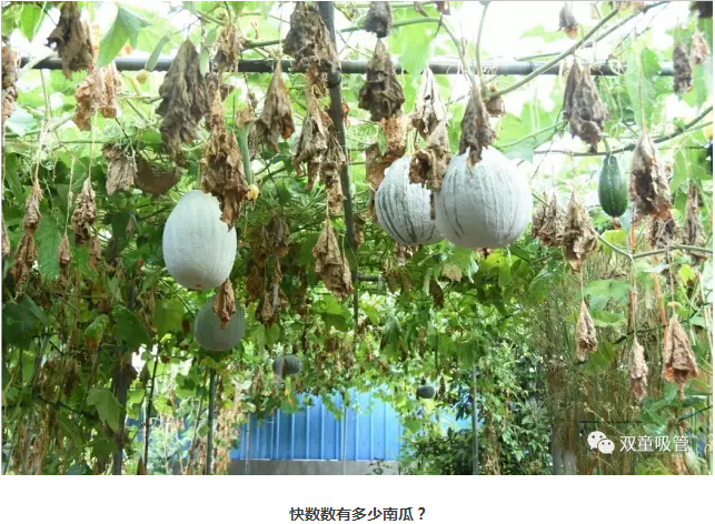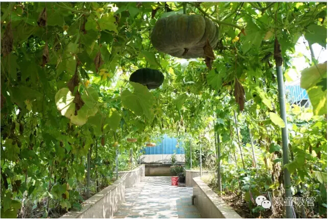 上個(gè)月,吸管妞和大家“炫耀”了“雙童”屋頂菜園的第一波豐收。這不,現(xiàn)在“雙童”的屋頂菜園又有了新面貌,藤架上掛滿了一個(gè)個(gè)的瓜果,綠油油地一片,真惹人喜愛呀!