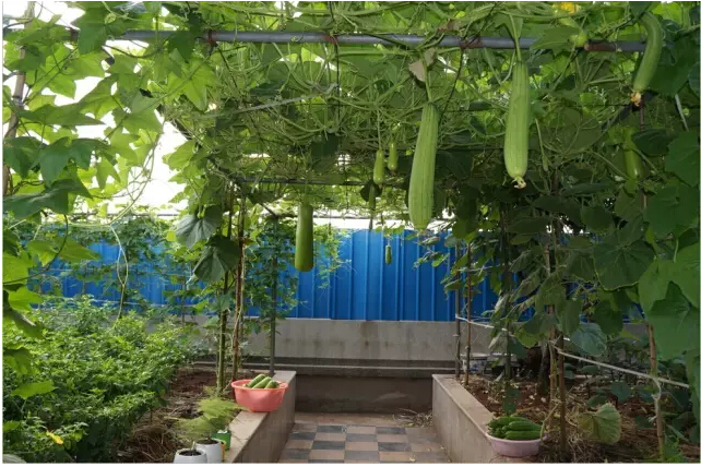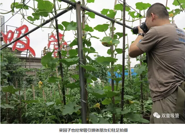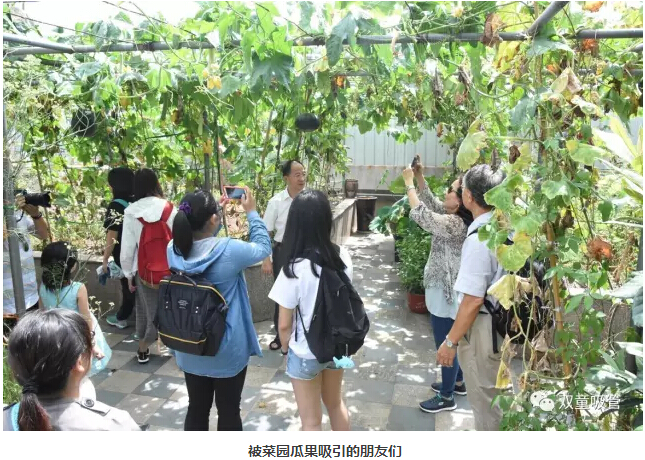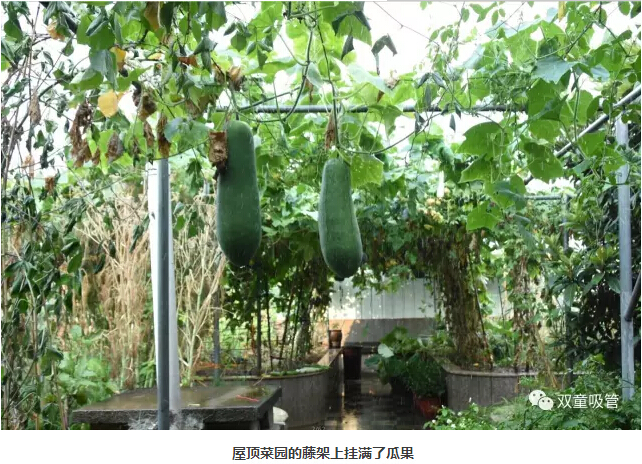這樣的場(chǎng)景也總會(huì)吸引來“雙童”參觀及媒體朋友們駐足觀賞,拍照留念,贊嘆屋頂菜園的瓜果!
