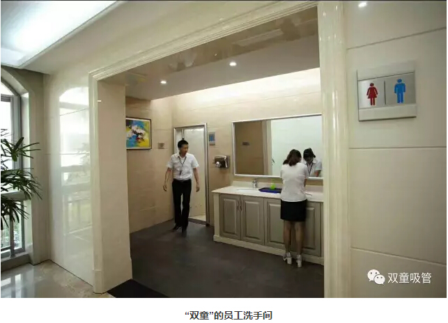 “雙童”樓仲平笑著回答:“當然了!‘雙童’十余個公共洗手間都是以五星級硬件標準進行裝修的,其實衛(wèi)生間最能體現(xiàn)出一個企業(yè)的文化,衛(wèi)生間應該是一個企業(yè)最干凈的地方,連衛(wèi)生間都打掃不干凈的企業(yè),怎么可能生產(chǎn)出讓人放心的產(chǎn)品!”