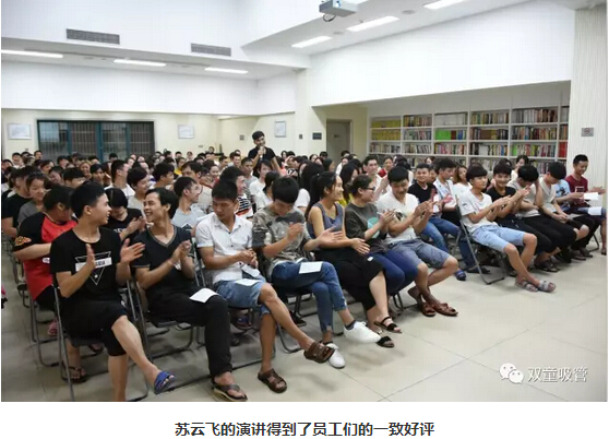 蘇云飛是一車間口杯班組長,他一反在員工前面演講的方式,走到員工當(dāng)中去,和員工進(jìn)行互動(dòng),現(xiàn)場的掌聲也是一陣接著一陣,氣氛達(dá)到了高潮。蘇云飛坦言,感謝廠長和一車間主任吳杰對自己的培養(yǎng)和提拔,接下來他也將保質(zhì)保量完成工作,以員工們掙到更多的錢作為自己的目標(biāo),和大家共同努力!演講的最后,蘇云飛也給自己拉起了票:就算跌倒,也要豪邁的笑,希望大家投我一票!一席話下來,也得到了現(xiàn)場員工們的一致好評(píng)!