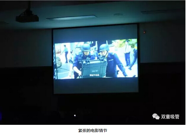 電影開始后,大家都靜靜地看著電影,電影中的拆彈環(huán)節(jié),讓在場的員工們都捏了一把汗,感覺像自己在拆炸彈呢!