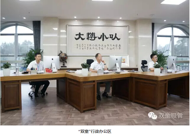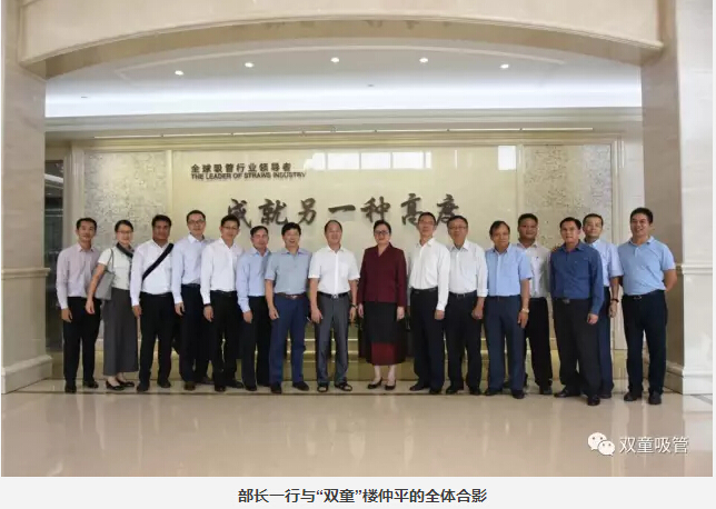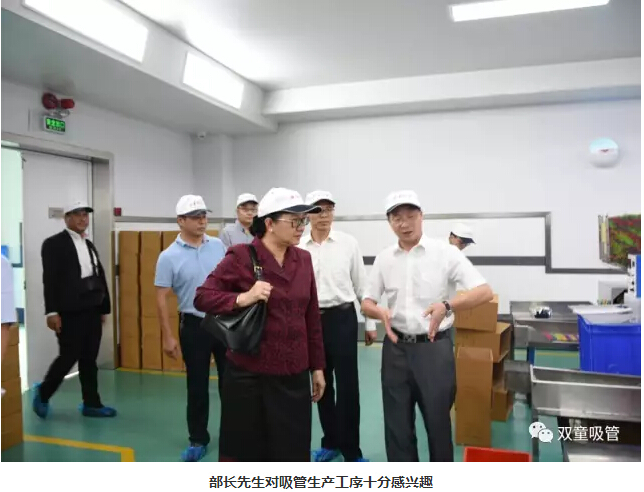 看到行政辦公區(qū)“以小博大”四個(gè)大字時(shí),部長(zhǎng)先生十分感興趣。樓仲平也分享道:“‘以小博大,成就另一種高度’是‘雙童’企業(yè)文化的體現(xiàn),我們始終堅(jiān)持這樣的理念,以博大的胸懷將一根吸管做精、做強(qiáng)、做到極致。”部長(zhǎng)先生聽(tīng)后也說(shuō)道:“我真是太喜歡‘雙童’了!”