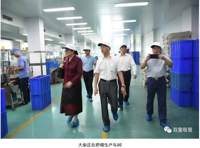 接著,“雙童”樓仲平也陪同部長(zhǎng)一行來(lái)到生產(chǎn)車間參觀產(chǎn)品生產(chǎn)線。