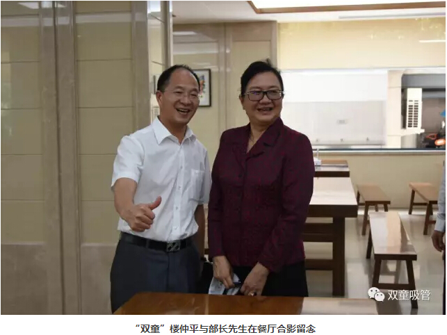 “其實(shí),在優(yōu)質(zhì)硬件背后,我們的目的也是基于穩(wěn)定員工而提升員工素質(zhì),逐漸改善員工的意識(shí)形態(tài)和生活習(xí)慣,用'心'生產(chǎn)出一流的產(chǎn)品!”在看到如此精細(xì)的就餐環(huán)境之后,部長(zhǎng)先生稱贊:想不到一個(gè)生產(chǎn)吸管工廠的員工們可以享受到如此優(yōu)質(zhì)的就餐環(huán)境。她說(shuō):”我真是太喜歡‘雙童’了!”這不,她還邀請(qǐng)樓仲平一起在餐廳合影呢!