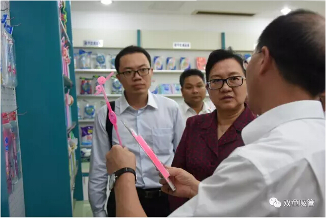 接著,大家來(lái)到了樣品房,被琳瑯滿目的各類吸管所吸引。“雙童”樓仲平向部長(zhǎng)先生詳細(xì)介紹了我們近些年研發(fā)的一系列創(chuàng)新吸管,并說(shuō)明這些吸管都是申請(qǐng)了專利證書。同時(shí),“雙童”還是浙江省唯一由單一企業(yè)承擔(dān)“行業(yè)標(biāo)準(zhǔn)、國(guó)家標(biāo)準(zhǔn)和ISO國(guó)際標(biāo)準(zhǔn)”的中小企業(yè)。部長(zhǎng)先生再次被“雙童”的工匠精神所震撼!她表示,她從來(lái)沒(méi)有想過(guò)一根吸管竟然還能有如此多的創(chuàng)意。部長(zhǎng)先生高興地說(shuō):“我真是太喜歡‘雙童’了!”