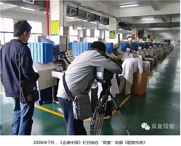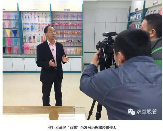 而到了2016年,《走遍中國》欄目再次走進義烏!《走遍中國》欄目以哈敏導(dǎo)演為首的四人攝制組先后四次走進“雙童”,用兩臺輕巧的小機器累計拍攝了兩天的鏡頭。節(jié)目導(dǎo)言如此介紹:義烏小商品在許多人眼里曾是低端的代名詞,但經(jīng)過二三十年的市場發(fā)展,義烏小商品已從初創(chuàng)時期的迎合時尚,發(fā)展到今天開始引領(lǐng)時尚。而其實義烏小商品一直在創(chuàng)新,“雙童”就是一個典型的例子。20年專注做一根吸管,全球210幾項的吸管專利,170項左右專利在“雙童”。一支支創(chuàng)意十足的創(chuàng)新吸管吸足了眼球。而“雙童吸管”經(jīng)過十年的發(fā)展,從當(dāng)年的“全球最大吸管廠”成長為現(xiàn)在力求“全球吸管行業(yè)領(lǐng)導(dǎo)者”,到底背后有什么故事呢?這一點實在是值得拍成片子,給全國的觀眾朋友們看看!
