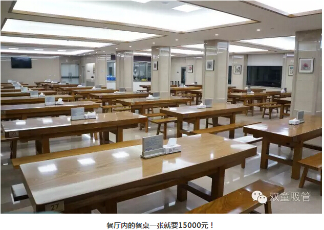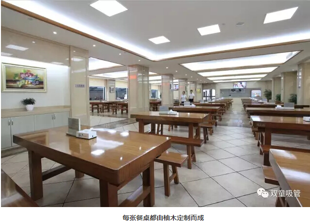 優(yōu)質(zhì)硬件是保障優(yōu)質(zhì)餐飲的前提,所以,“雙童”五星級(jí)員工餐廳內(nèi)的設(shè)施都配備了最好的硬件,以保障餐飲的品質(zhì)!就拿網(wǎng)友熱議的員工餐廳這張桌子來說,一張就要15000元,餐廳內(nèi)光光餐桌的總投資就達(dá)到70多萬。每一張桌子重達(dá)四五百斤,是樓仲平特地去東陽市中國紅木家具城挑選由“木中之王”的柚木(也稱胭脂樹)定制而成,特點(diǎn)是紋理線條優(yōu)美,所以每張餐桌的顏色都很漂亮,十分細(xì)膩!