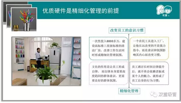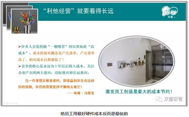 很多人都會(huì)問“雙童”做“一根吸管”為何要給員工使用“五星級(jí)”硬件,為何要用如此高的成本經(jīng)營?“雙童”當(dāng)家人樓仲平曾對(duì)此疑問作回應(yīng):當(dāng)員工用最好硬件時(shí)成本反而是最低的。一向節(jié)省的當(dāng)家人為何會(huì)這么說?對(duì)此,吸管妞將推出關(guān)于“雙童”高品質(zhì)管理的背后邏輯系列文章,首先和大家分享第一篇: