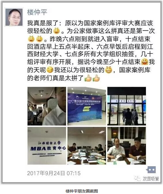 樓仲平在比賽前一晚抵達(dá)江西財(cái)經(jīng)大學(xué)后,就投入到緊張的工作當(dāng)中,對(duì)16支半決賽的隊(duì)伍進(jìn)行盲審,直至晚上10點(diǎn)才結(jié)束工作。第二天一大早,所有評(píng)委老師5點(diǎn)半就起床,六點(diǎn)用完早餐就啟程前往江西財(cái)經(jīng)大學(xué)開展一天的工作。高強(qiáng)度的工作也讓樓仲平刷新了對(duì)此次大賽的認(rèn)知,在朋友圈直言“沒想到老師們也這么拼”!