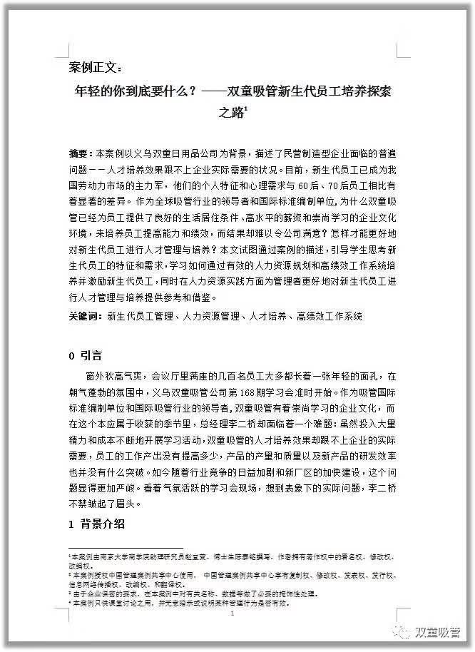截止到目前,以“雙童”為主題的案例進(jìn)入到國(guó)家案例庫的數(shù)量就高達(dá)5件。其中南京商學(xué)院研究案例《年輕的你到底要什么?——雙童吸管新生代員工培養(yǎng)探索之路》、浙江工業(yè)大學(xué)研究案例《以小博大,一根吸管的藍(lán)海之旅》兩件研究案例更是被評(píng)為了2016年度百優(yōu)案例!浙江工業(yè)大學(xué)研究案例《以小博大,一根吸管的藍(lán)海之旅》還成為了此次全國(guó)管理案例精英賽總決賽的案例!