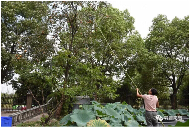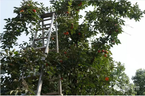 搬來梯子,準(zhǔn)備好箱子,采摘正式開始!瞧我們的采摘員“掛”在柿子樹上那叫一樂呵,還揚(yáng)言說“別急,等我吃飽了再幫你們摘!”