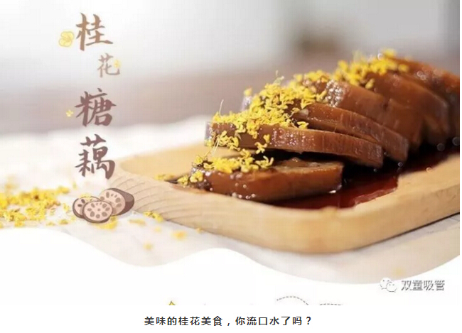 《本草綱目拾遺》中說(shuō):桂花,味辛,性溫。桂花氣味濃重,辛香隨氣,最易走竄。能為身體驅(qū)走陰寒,幫助疏通瘀滯,喚醒脾胃。氣味,香味都比肉桂他們美太多,還是花材里的“溫陽(yáng)擔(dān)當(dāng)”。不僅如此,桂花還可用來(lái)制作桂花鴨、桂花藕、桂花糕、桂花茶……食材配上花材,那味道,簡(jiǎn)直是……額,吸管妞的口水都要流下來(lái)啦!
