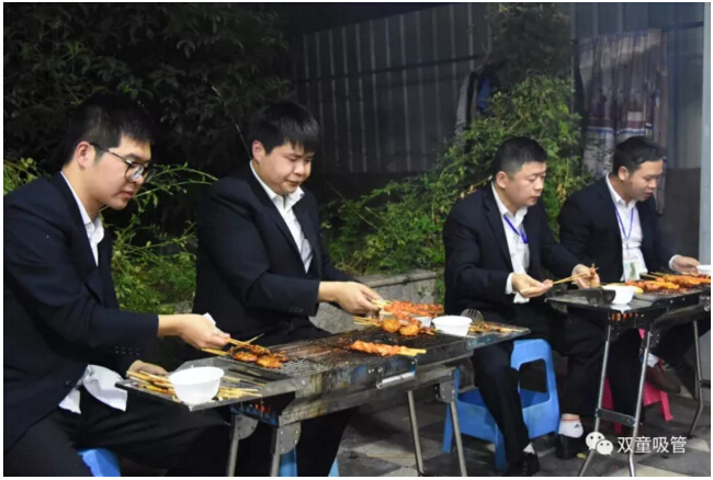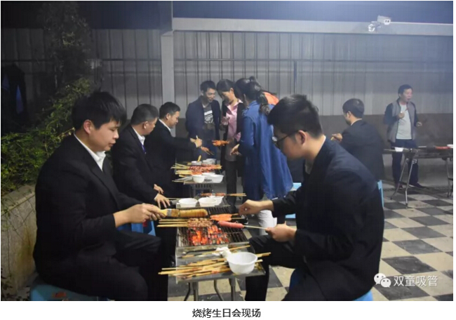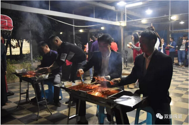 咦?車間管理們也爭(zhēng)當(dāng)起了“燒烤小販”,為壽星們進(jìn)行服務(wù)。員工們喝著美酒吃著主管們烤的肉串,別提多開心啦!往往員工手上的還沒吃完,這邊領(lǐng)導(dǎo)們就已經(jīng)笑瞇瞇地把新烤好的肉串奉上了,吃都來(lái)不及,這是什么節(jié)奏?