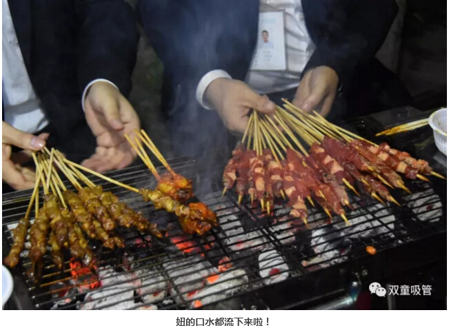 雞翅肉串、羊肉牛肉、年糕香腸……生日會(huì)辦成了自助燒烤、篝火酒會(huì),推杯換盞,大聲調(diào)笑,氣氛 so hot!什么都別說(shuō),也別問(wèn)吸管妞到底吃了多少羊肉串,大家只要看看這些照片,再分享一下就行了!