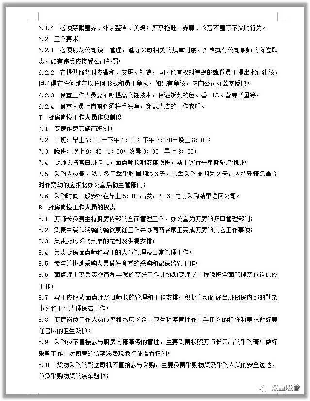 對于餐飲的管理,我們也有一系列的制度文件支撐!從1997年開始,“雙童”就對食堂進(jìn)行了規(guī)范管理,制定了很多的管理型文件!