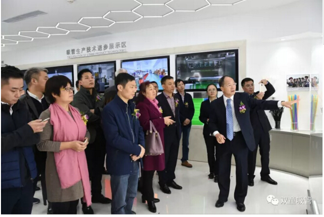 揭幕儀式之后,所有嘉賓們一起進(jìn)入中國(guó)吸管博物館進(jìn)行參觀,共同觀看了中國(guó)吸管博物館宣傳片。“雙童”樓仲平和大家一一介紹了吸管產(chǎn)業(yè)發(fā)展的歷史和現(xiàn)狀、吸管生產(chǎn)技術(shù)進(jìn)步展示區(qū)、吸管產(chǎn)品配套應(yīng)用區(qū)、創(chuàng)新產(chǎn)品體驗(yàn)區(qū)、吸管產(chǎn)品DIY展示區(qū)、吸管產(chǎn)業(yè)資料展示區(qū)等各項(xiàng)展示區(qū)域,嘉賓們?cè)趨⒂^的過(guò)程中連連驚嘆:一根吸管原來(lái)還有這么豐富的內(nèi)容展示!
