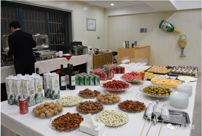 當天晚上,我們也特地準備了歡迎晚宴,在屋頂花園舉行了自助燒烤晚會。瞧!豐盛菜肴、酒水飲料、點心水果、燒烤小吃……現(xiàn)場的花樣十足,光是看看吸管妞就“飛流直下三千尺”啦!