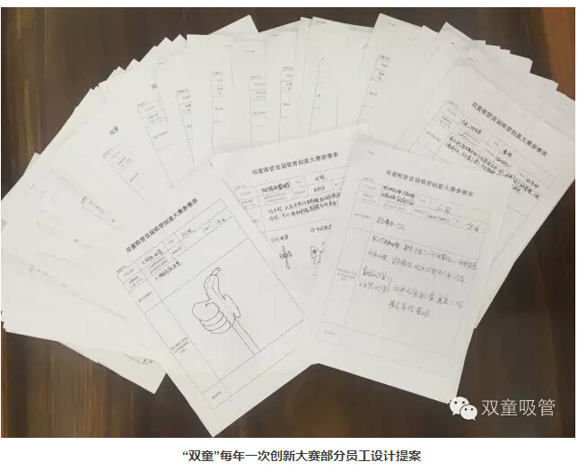 在創(chuàng)新之路初期,由于當(dāng)時條件所限,“雙童”不僅沒有實驗室,更沒有專業(yè)研發(fā)團隊。為了邁出企業(yè)創(chuàng)新第一步,“雙童”樓仲平大門不出二門不邁,連續(xù)三個月未曾踏出公司一步,通過深刻的思考,他從零開始撰寫“吸管除了喝飲料還能干什么”,從而開發(fā)出了風(fēng)車吸管、哈哈吸管、可降解吸管、吸管自動盒等幾十個產(chǎn)品,并申請了發(fā)明專利和實用新型專利。