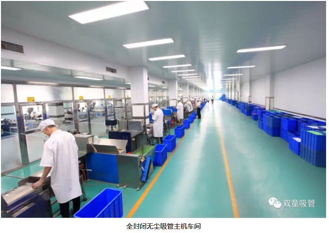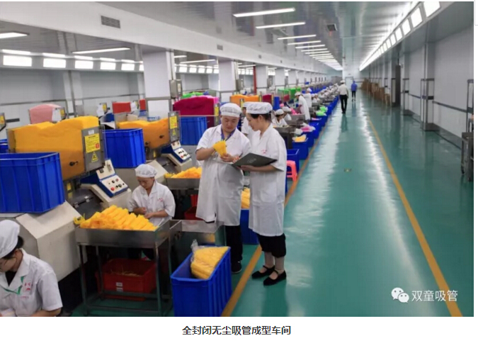 “雙童”車間的每個(gè)入口,有著許多安全、衛(wèi)生提示的標(biāo)牌,引導(dǎo)員工門在進(jìn)入車間時(shí)要注意安全和衛(wèi)生防護(hù)工作。進(jìn)入車間內(nèi)部,一列列整齊的機(jī)器、一箱箱五顏六色的吸管、一條條清晰分明的分界線,車間內(nèi)全部安裝了恒溫空調(diào),屋頂全部進(jìn)行精裝修寬敞明亮,柱子和地腳線用不銹鋼進(jìn)行包邊,大大增加了建筑年限。所有員工皆穿著潔白的工作服,正在忙碌地進(jìn)行生產(chǎn)工作。